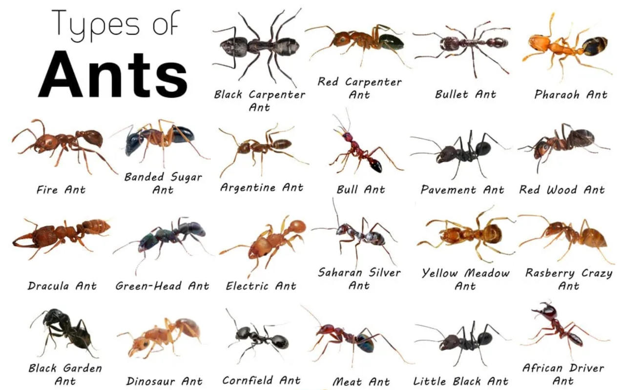 Hier afbeelding van verschillende mierensoorten.