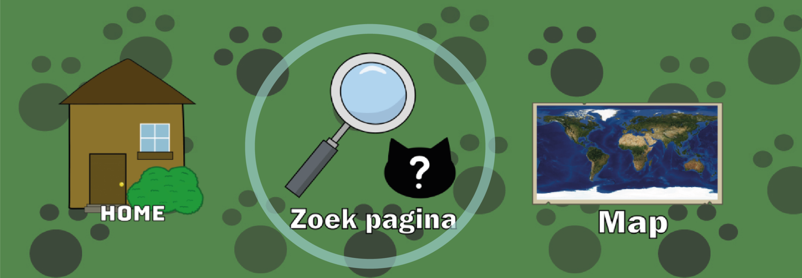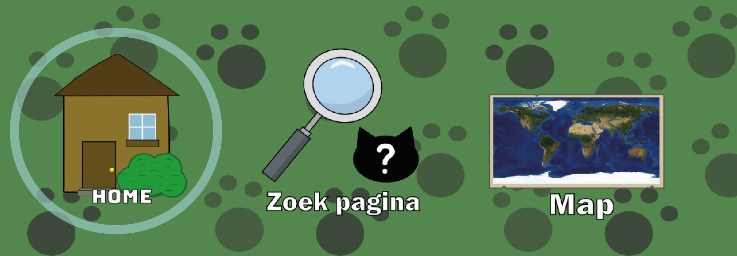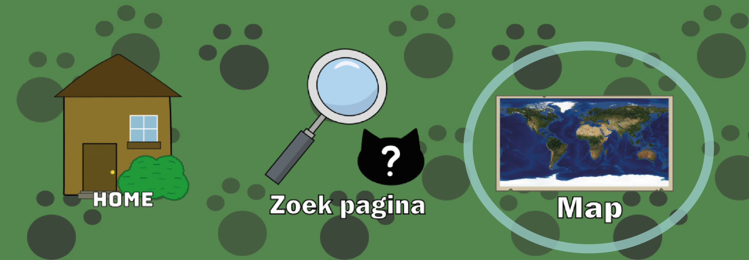 Als je op de Map pagina klikt, ben je nu in Map pagina. Deze Pagina gaat over, dat pagina is beetje het zelfde als de Zoek Pagina. Maar het gaat over welke dieren die leven in verschillende leefgebieden.