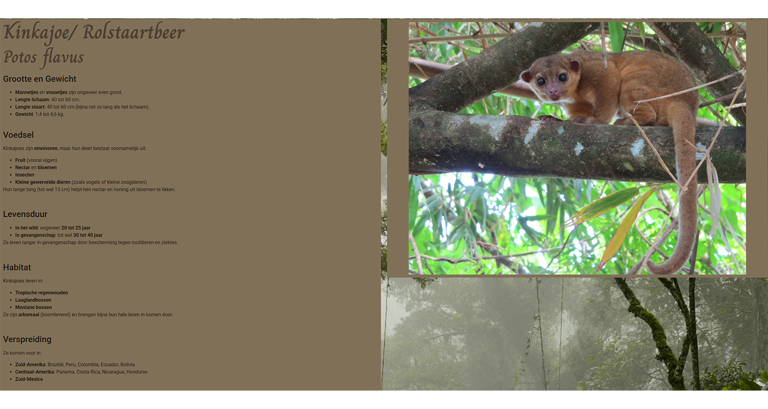 Als je op een verschillend dier klikt, ga je naar andere pagina naartoe. En als je daar bent, ziet je in het informatie van het dier. Je kunt het informatie zien hoe het dier eigenlijk is, of wat die eet, en waar de verwant is van andere dier. Als je beneden scrolt kom je tegen staat er Extra Informatie.