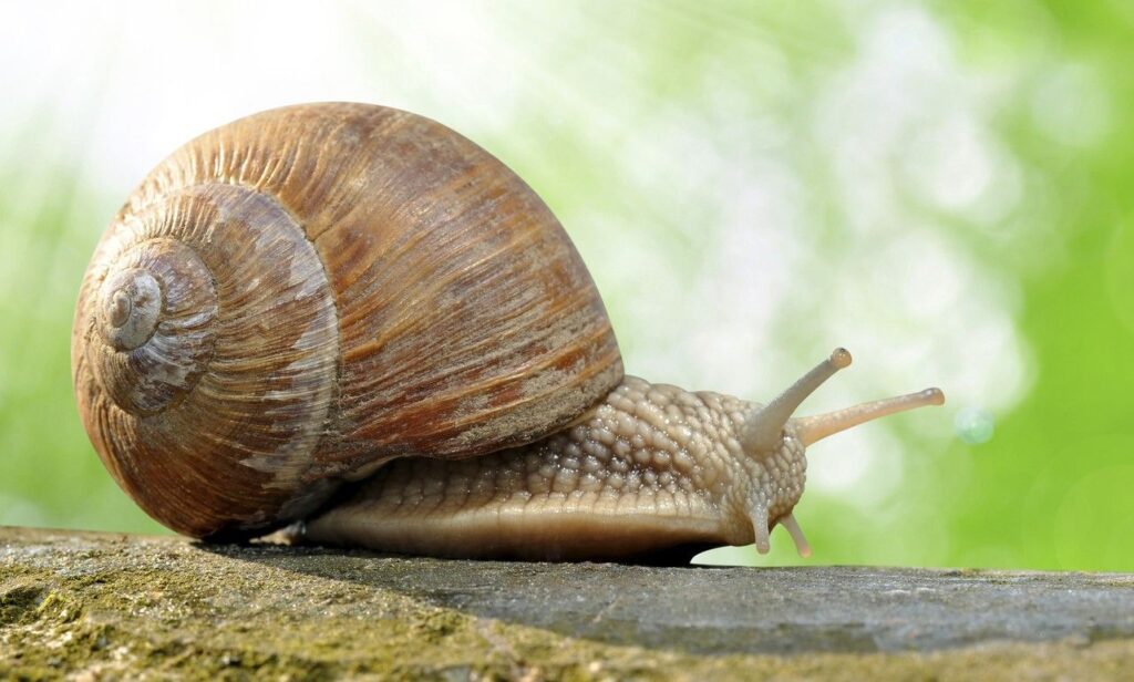 In plaats van te vluchten, verdedigen slakken zich door zich terug te trekken in hun schelp. Snelheid is dus geen noodzaak voor hun overleving.